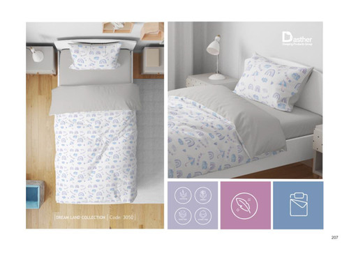 برای حفظ کیفیت و افزایش عمر سرویس خواب: • از شستشو با آب داغ خودداری کنید • از سفیدکنندهها استفاده نکنید • بهتر است در دمای پایین و با دور ملایم ماشین لباسشویی شسته شود • پس از خشک شدن، آن را اتو کنید تا ظاهر صاف و زیبا داشته باشد