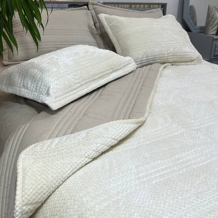 سرویس روتختی مدل کالیفرنیا با پارچه رویی مخمل لطیف و پشت آن با پارچه نخی طراحی شده است که شامل 2 عدد روبالش مخمل 2 عدد روبالش نخی 1 عدد کاور تشک کشدوزی 1 عدد روتختی می باشد که مناسب برای تخت با عرض 160 و 180 سانتیمتر است.