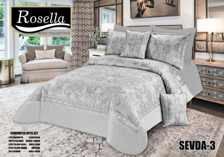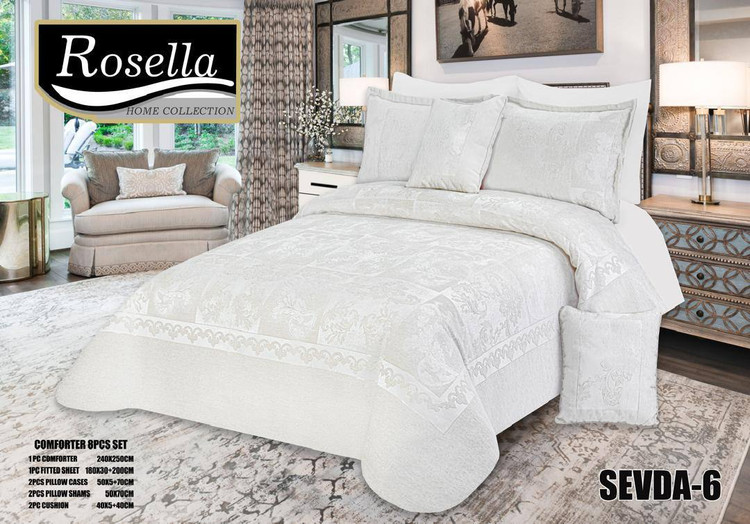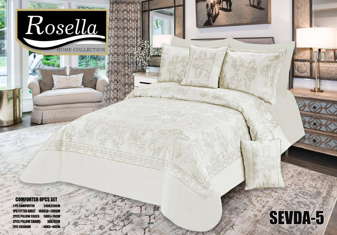 شامل: 1 عدد لحاف روتختی مخمل ژاکارد- 1 عدد کاور تشک کشدوزی- 2 عدد روبالش شانل - 2 عدد روبالش نخی- 2 عدد کوسن پر شده