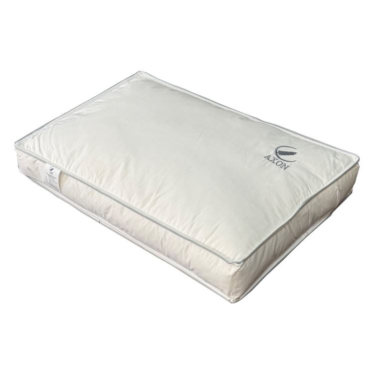 بالش super comfort از سری بالشهای هتلی مجموعه آکسون با پر طبیعی غاز و استفاده از پارچه های down proof و 100 % کتان مخصوص پر که از بیرون زدگی گرده های پر جلوگیری میکند و با ارتفاع نسبتآ بیشتری نسبت به سایز بالشهای پر تولید و عرضه میگردد. پارچه مخصوص این بالش مانع از ایجاد حساسیتهای پوستی و تنفسی و تجمع باکتری ها میشود 85 % از پرهای موجود در این بالش از پرهای گردن و سینه (down) و مابقی از پرهای بال و کتف غاز (feather)تشکیل شده است. دیواره 10 سانتی این بالش باعث ساپورت قسمت گردن میشود.